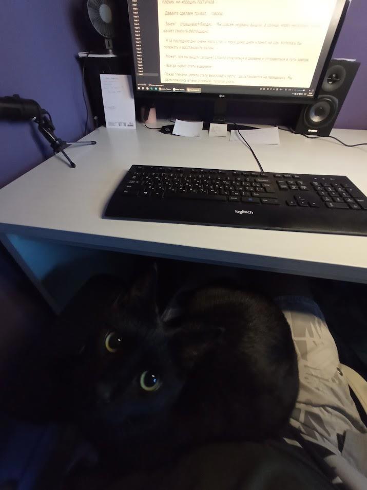 Этого парня зовут "Жук" и он помогает мне придумывать новые миры. В какой бы период дня я ни сел за компьютер, он обязательно взгромоздится на колени и будет тихо спать, чтобы я не имел возможности встать, пока не допишу главу.