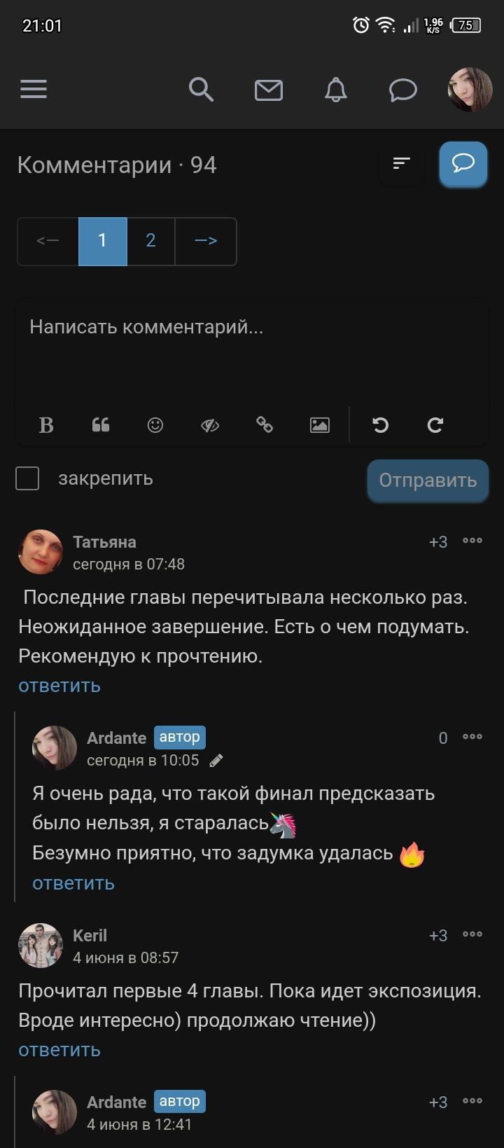 Автор: ArdanteЭто истинно тот момент, когда понимаешь, что моя книга целью которой я изначально ставила именно вынудить задуматься, перечитать и не один раз, достигнута! Даже и не знаю, что точно испытываю, наверное восторг, свершение самого сокровенного желания. Что наконец, оно воплотилось так, как я того хотела. Для меня это самое драгоценное и никакие деньги мира мне не купят это чувство. Спасибо, огромное Татьяна