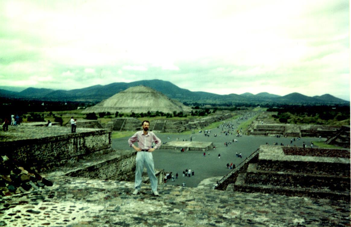"Теотиуакан" - "место, где рождаются боги" или "место апофеоза" – место где размещены пирамиды. Раскопки в Теотиуакане начались в 1889 году под руководством археолога-любителя Леопальдо Батреса (Л. Бат-рес — бывший охранник диктатора П. Диаса, а также первый в Мексике археолог-мексиканец). Исто-рия этого города также загадочна. Он процветал в классическую эпоху, когда майя построили Паленке, но около 750 года н.э. был оставлен жителями по не вполне понятным причинам. Батрес во время рас-копок обнаружил, что город был в значительной мере уничтожен большим пожаром. Можно было по-думать, что город был подожжен захватчиками, иначе кто мог бы это сделать? Но тут обнаружилась еще одна странность: многие здания были намеренно завалены щебнем и зарыты в землю, так что уцелели даже деревянные крыши. Это, конечно, был огромный труд, и все для того, чтобы “захоронить” здания в покинутом городе. И остается неясным, зачем это могло бы понадобиться самим обитателям или предполагаемым захватчикам. Батрес предположил только, что все было сделано, чтобы защитить сакральные здания от глаз профанов.