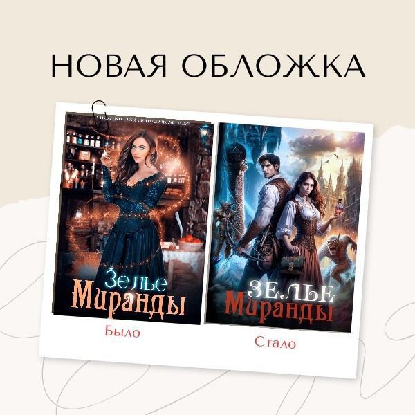 Почему я изменила обложку? Первая мне очень нравится, но... эта обложка больше подходит для книги в жанре бытовое фэнтези и читатели, кто не знаком с моим творчеством, думают, что книга "Зелье Миранды" - это лайтовая история, а у меня в Зелье настоящий экшн ))) чудовища, которые хотят захватить мир. )) Любовь в Зелье тоже присутствует, но все же приключений больше)