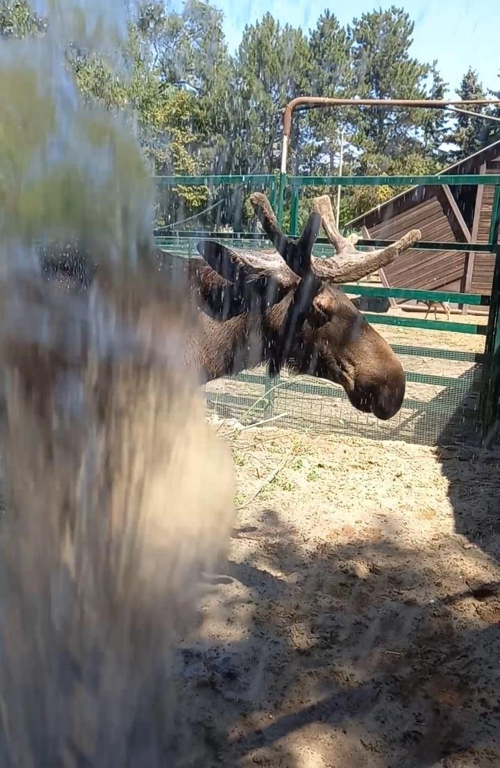 Лось Лосик принимает душ.
