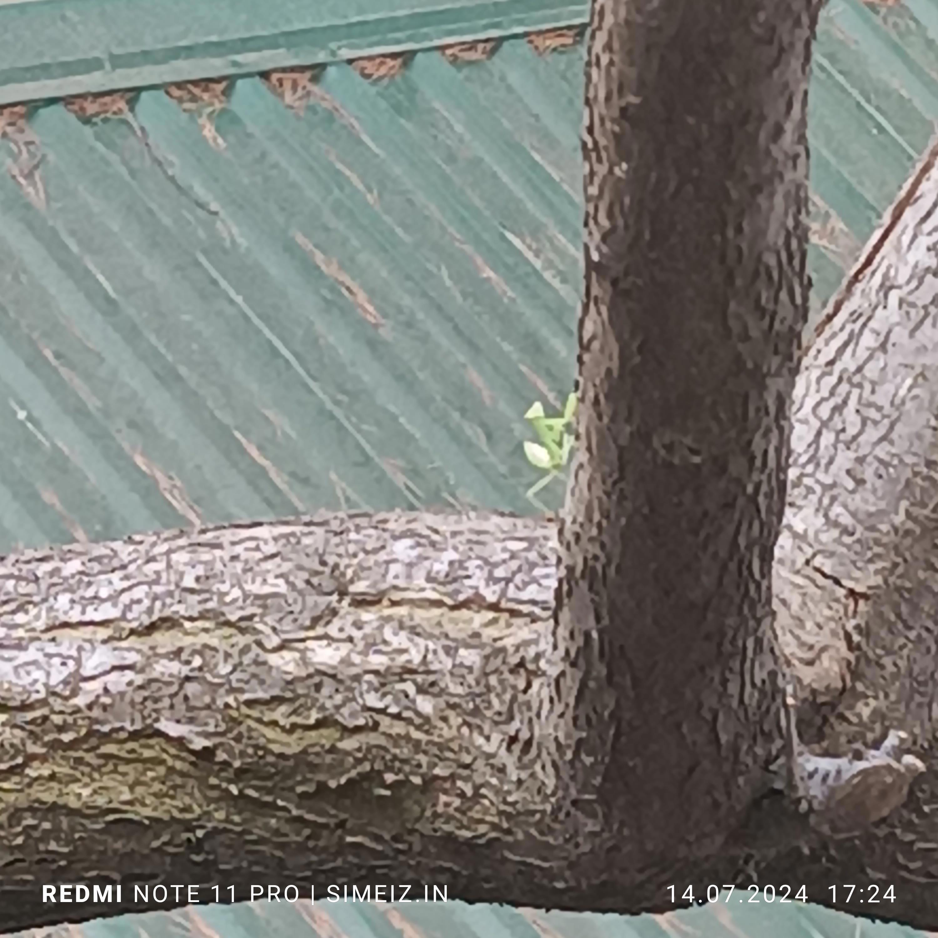 Короче, пошла я нарвать мяты себе в воду положить для вкуса. Возвращаюсь домой, чую - что-то по руке ползёт. Выворачиваю локоть, а там богомольский подросток! Я как заору, как брошусь к двери! Вынести его, чтобы потом по дому не ловить (не люблю насекомых в доме, особенно больших, спать не смогу, пока не выгоню).