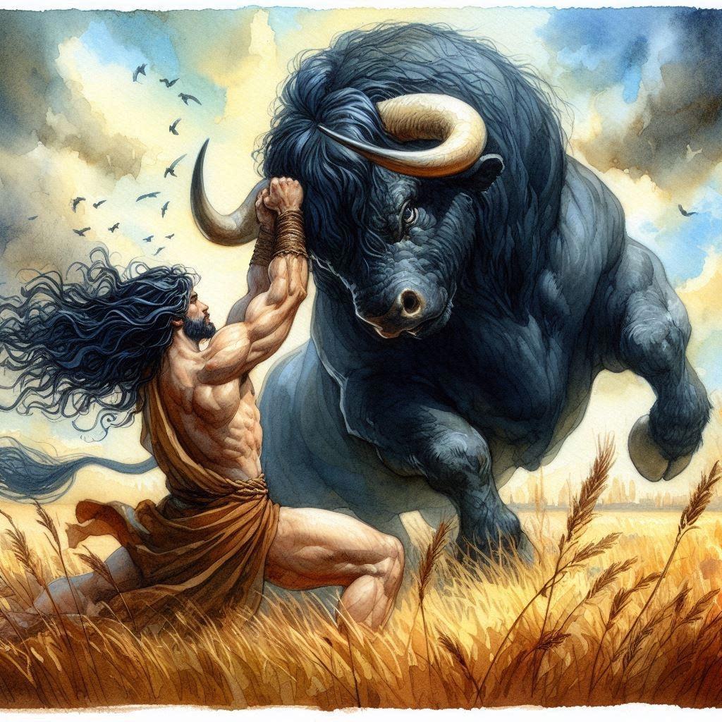 Критский бык. (Да, я знаю, что он белый был, но ни один белый не вышел таким эффектным, как этот. Даже сомнения берут, что Гераклу удалось такого оглушить).