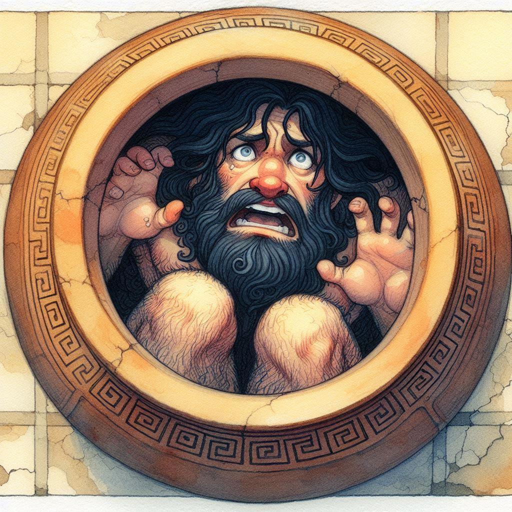 Увидев страшного вепря, Эврисфей со страху спрятался в бочке: