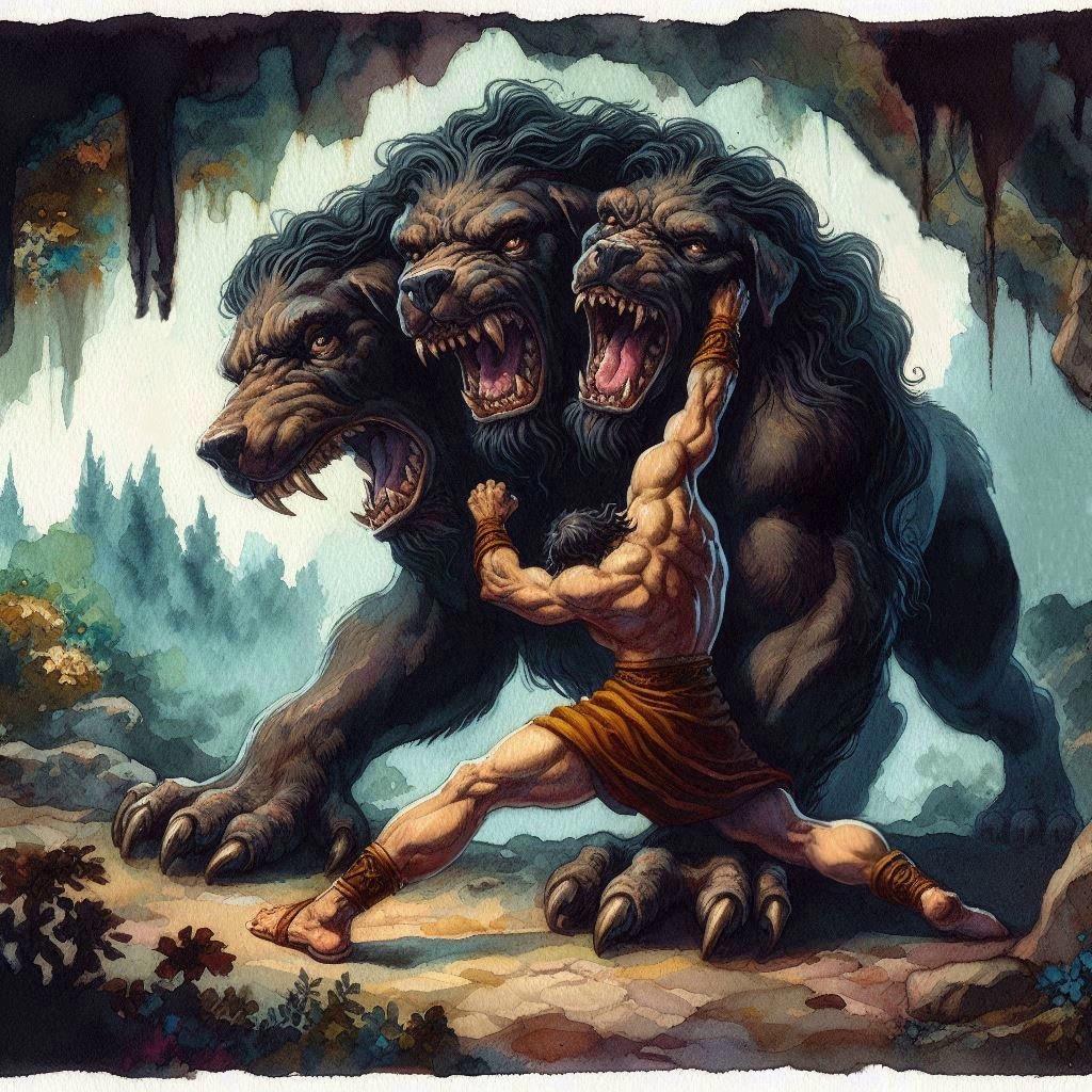 Цербер. Кто-кого-поборюшики в самом разгаре, Цербер матерится - не любит, когда у него волосинки из уха выдирают.