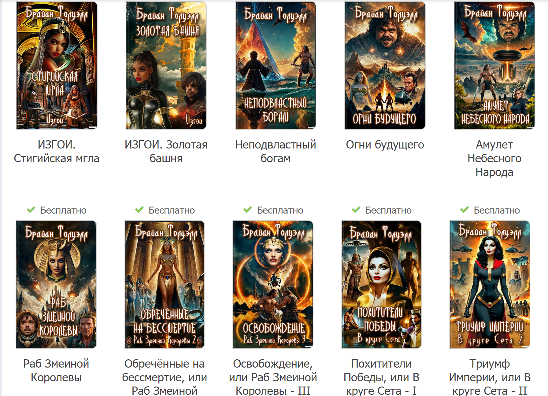Автор: Борис Толчинский aka Брайан ТолуэллИтак, все обложки книг толуэлловского цикла - обновлены! Как раз к 30-летию начала работы над циклом. Все теперь в едином стиле, с настоящими героями, какие они в книгах, сценами из книг и духом книг, насколько я сумел всё это передать.