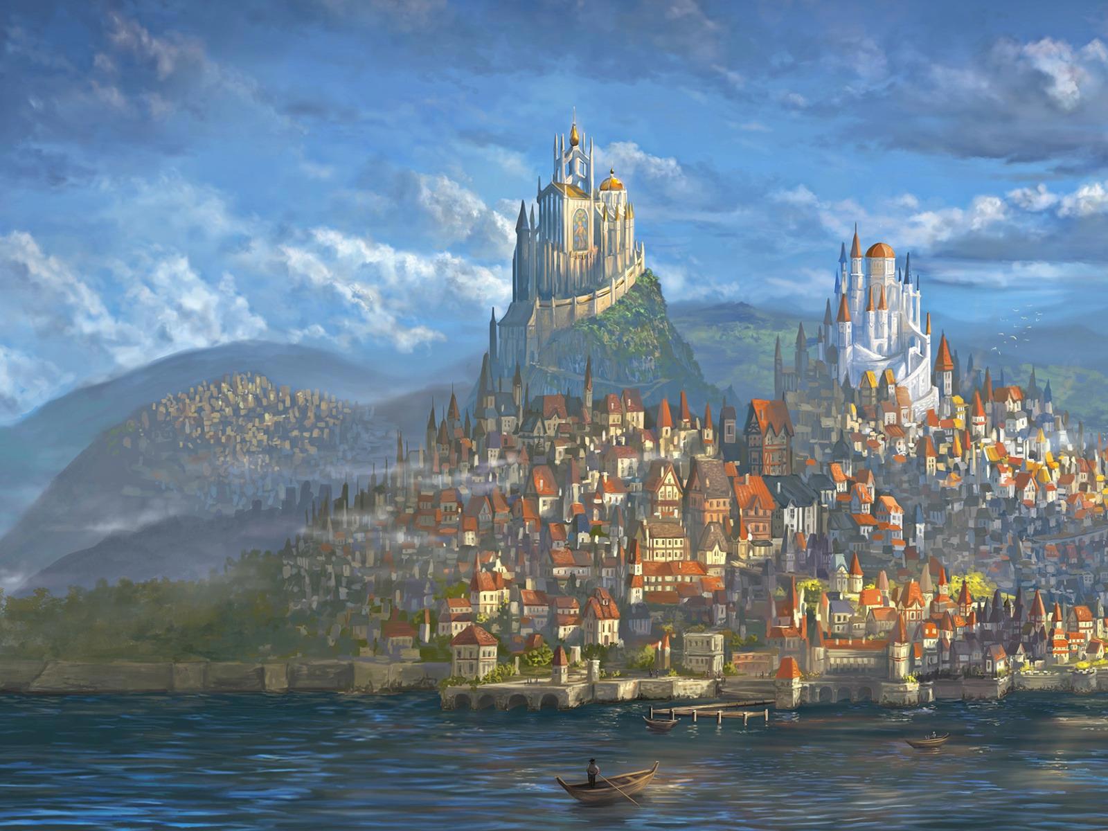 Так вот, прекрасные фэнтези города от не менее прекрасных художников! Не устаю восхищаться творчеством у людей! Сколько труда и сил вложено в каждый рисунок! Эх... Остается только любоваться)
