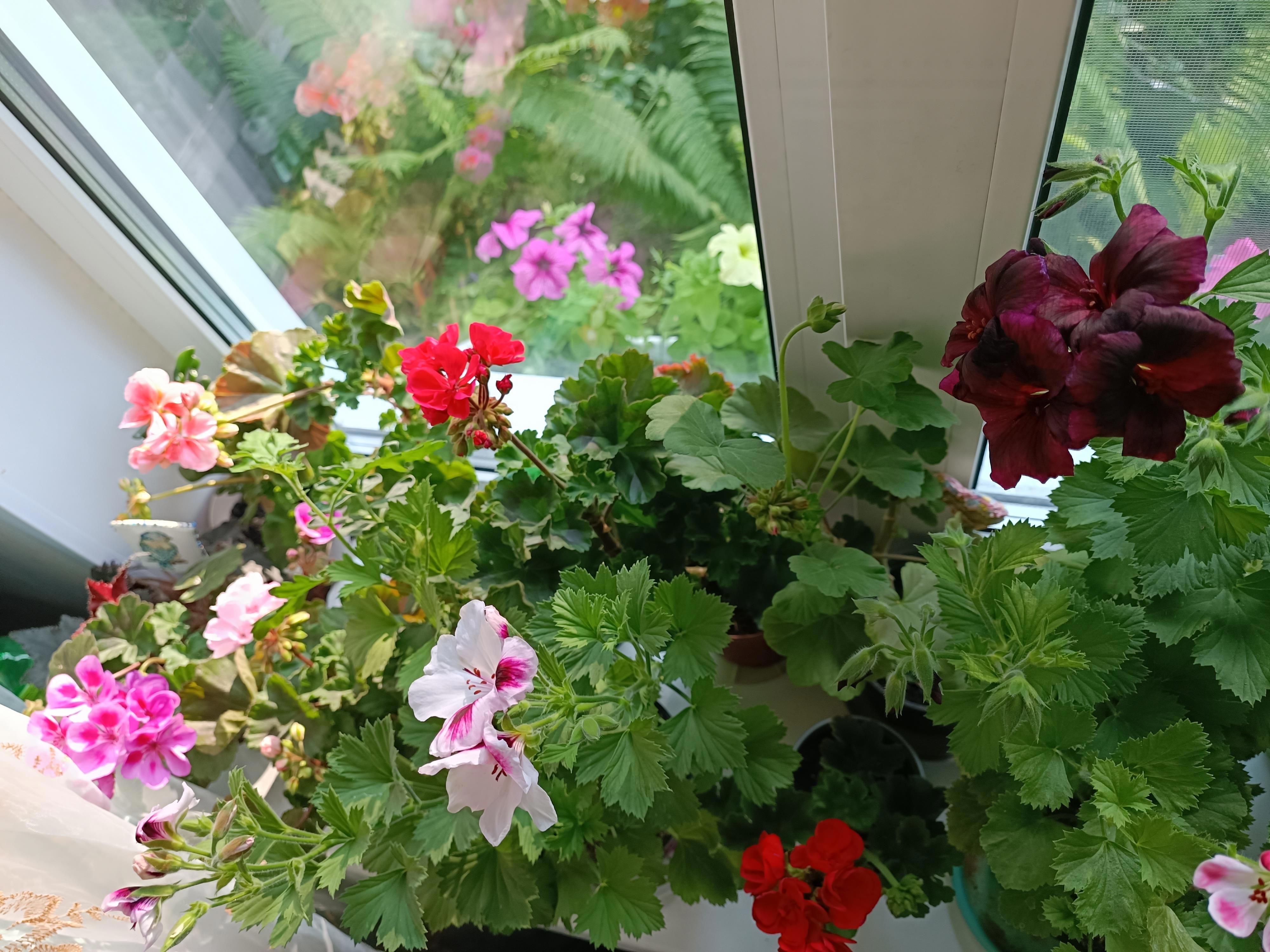 Здесь не все, часть проводит лето на даче и есть несколько горшков на других окнах. На улицу в этом году не высадила. Там уже места не хватает