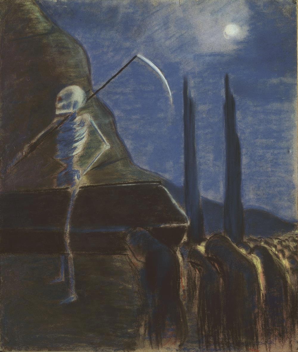 А еще он создавал целые иллюстрированные симфонии. Вот одна из них, называется "Симфония похорон". У каждой картины в этой истории... то есть симфонии... в общем, есть свое место и своя последовательность.