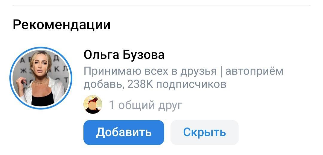 Но в тот раз было хоть понятно, почему ВК предложил мне в друзья известного писателя. А Бузову-то почему? Я её даже ни разу не гуглил. Честно!