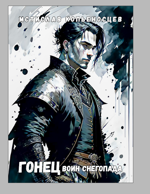 Что-то получается и тут. Ну вот видим. Эта голова... мы хотели воина... Вот и приняли решение, даже еще немного отправили чересчур выразительный текст на задний план. Тем более это там имя автора, так даже более уместно его писать. Зная любовь и имя писать декоративно сначала сделал наглядно то как сверху. Видите - многовато.