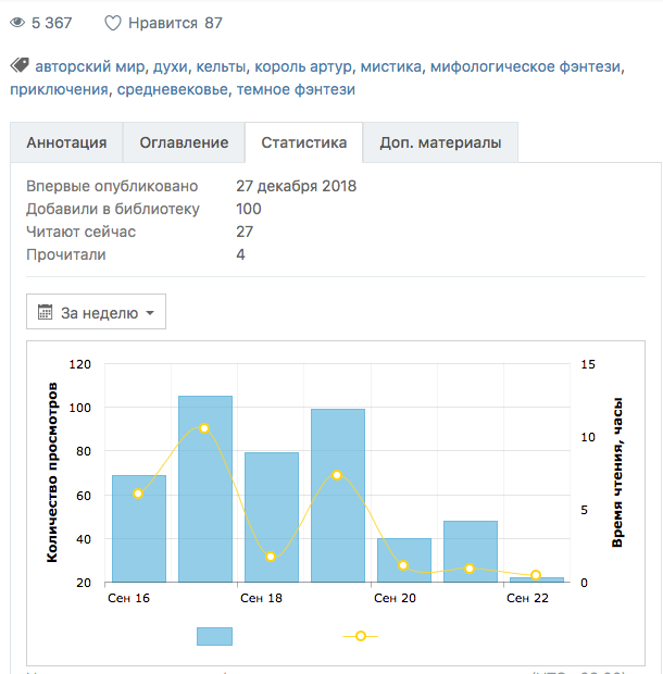 Автор: Тимур МарковУ меня тут небольшой праздник. Заглянул в стату "Рыцаря", а там количество добавлений в библу достигло символической отметки в 100. Вкупе с просмотрами, перевалившими за 5000, можно, наверное, считать это определенной вехой на творческом пути. По крайней мере, это значит, книгу читают и ей интересуются. Это ли не самое главное для автора?