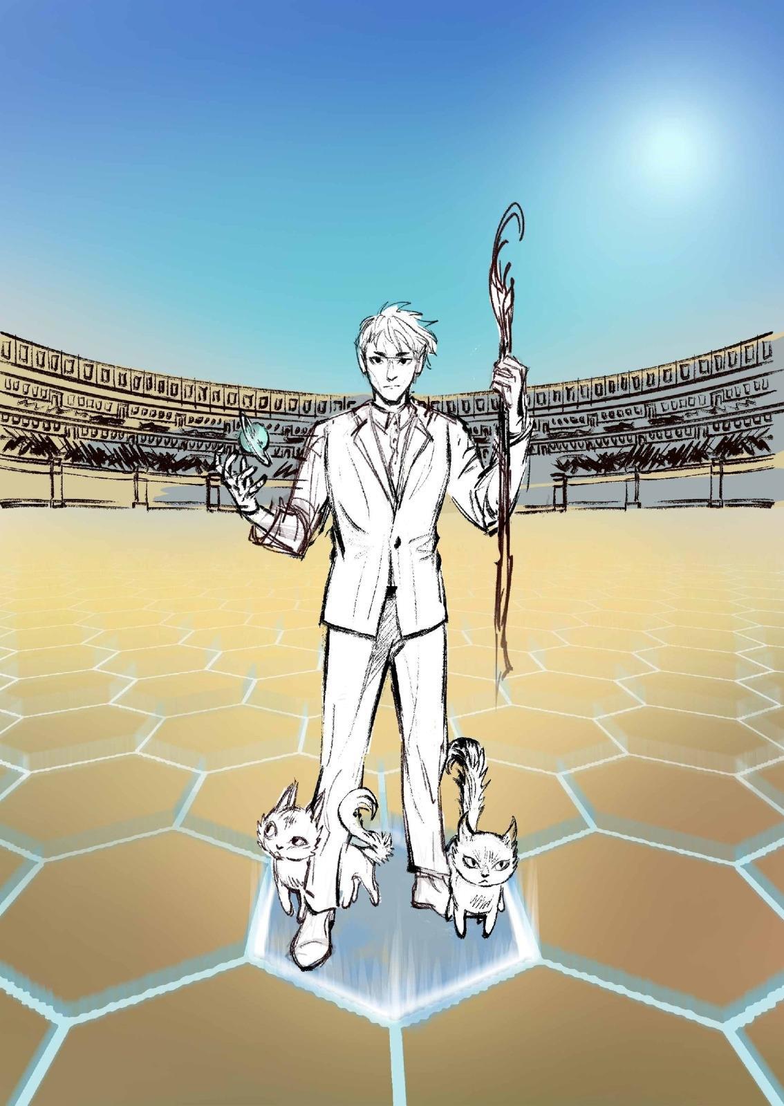И чтобы не сильно злить вас, уважаемые читатели, хочу предложить на ваш суд проект обложки. Он со спойлером, как раз сейчас расписываю этих зверей у ног героя.