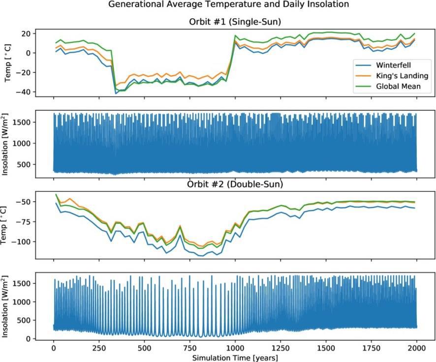 Именно зимой, а не «Долгой ночью». В легендах сказители ссылались на некий катаклизм, время, когда Вестерос погрузился во мрак. Не совсем понятно, из-за чего это случилось, и как все живое пережило долгое отсутствие солнца. Интересовать нас должны «лето» и «зима». В сериале они длятся неестественно долго. Одно из научных объяснений заключается в том, что планета, на которой живут герои сериала, движется по эллиптической орбите, вследствие чего, через определенное количество циклов, удаляется достаточно далеко от солнца. Так наступает долгая зима.