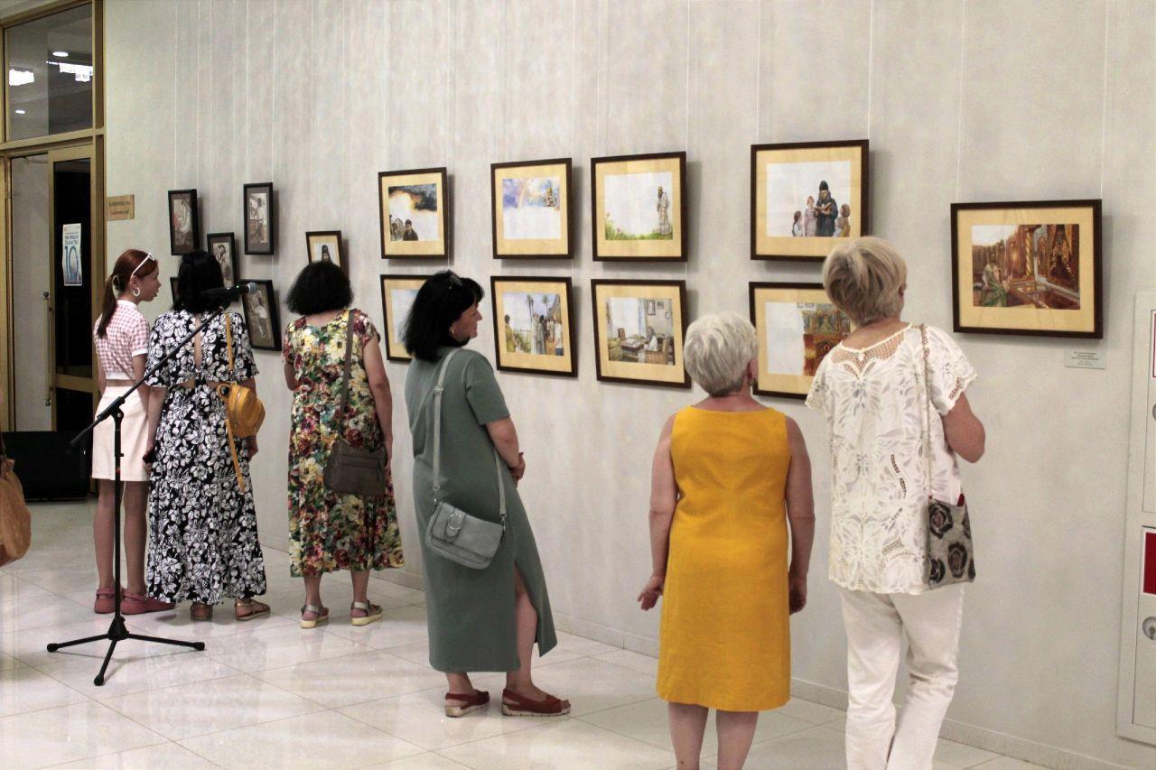 В экспозицию вошло около 50 графических произведений, преимущественно выполненных в технике акварели.