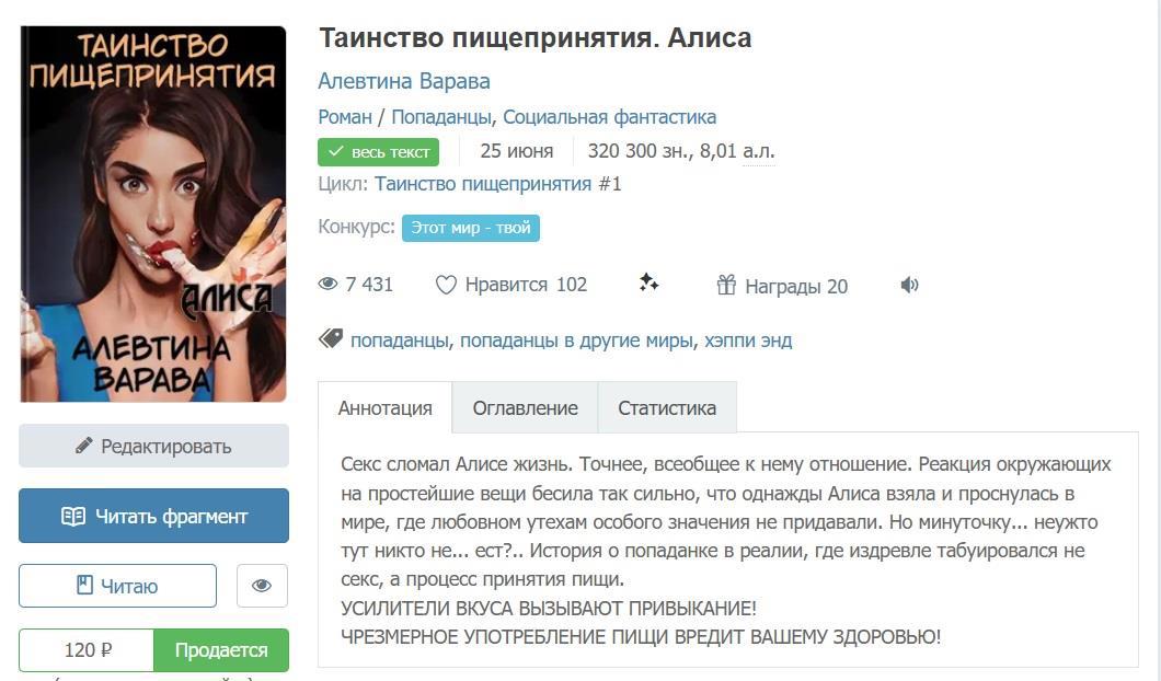История измерения, в котором оказалась Алиса, свернула в непривычное русло на этапе становления церкви. Именно тогда были наложены строжайшие табу на такое человеческое удовольствие, как принятие пищи. Запреты уходили к библейскому зарождению рода людского – ведь именно вкушение запретного плода в Райском саду сослало человечество с Небес.