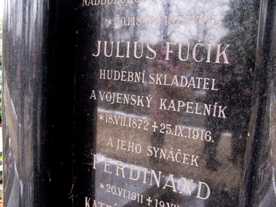 и "Дунайские повести", соч. 233, увертюра к опере "Святой Губерт", соч. 250, марш " Strýček Teddy" соч. 239, но Фучик этим не удовлетворился и пытается изменить место службы. Он в следующем, 1910 году получает известие о появившейся вакансии в 92-м пехотном полку, стоявшем в крепости Терезиенштадт (нем. Theresienstadt, совр. Терезин в Чехии) и переводится туда. Наконец-то, он в Чехии, хотя и в 70-ти километрах к северу от родной Праги. Неплохой полковой оркестр быстро доводится до совершенства, Фучик делает с ним пробный концерт в Праге. Но здесь ему оказались не рады. Его коллеги, как военные, так и гражданские, почувствовали в нём весьма опасного конкурента, к тому же их очень сильно раздражают его растущая известность успешного композитора и гражданская жена-немка. С сюитой Život op. , которую он исполнил с Чешским филармоническим оркестром, не имел успеха ни у публики, ни у пражских рецензентов, и это разочарование надолго отравило его душу. Через некоторое время Прага становится закрытой для Фучика, ему приходится выступать с оркестром на северочешских курортах, это прибыльно, но не приносит так желанной известности. Фучик женился на Кристине Хардегг в Терезине в 1910 году, а в июне 1911 года у них родился сын Фердинанд, который умер менее чем через месяц. К терезинскому периоду относятся сочинения: увертюра "Мирамаре", соч. 247,