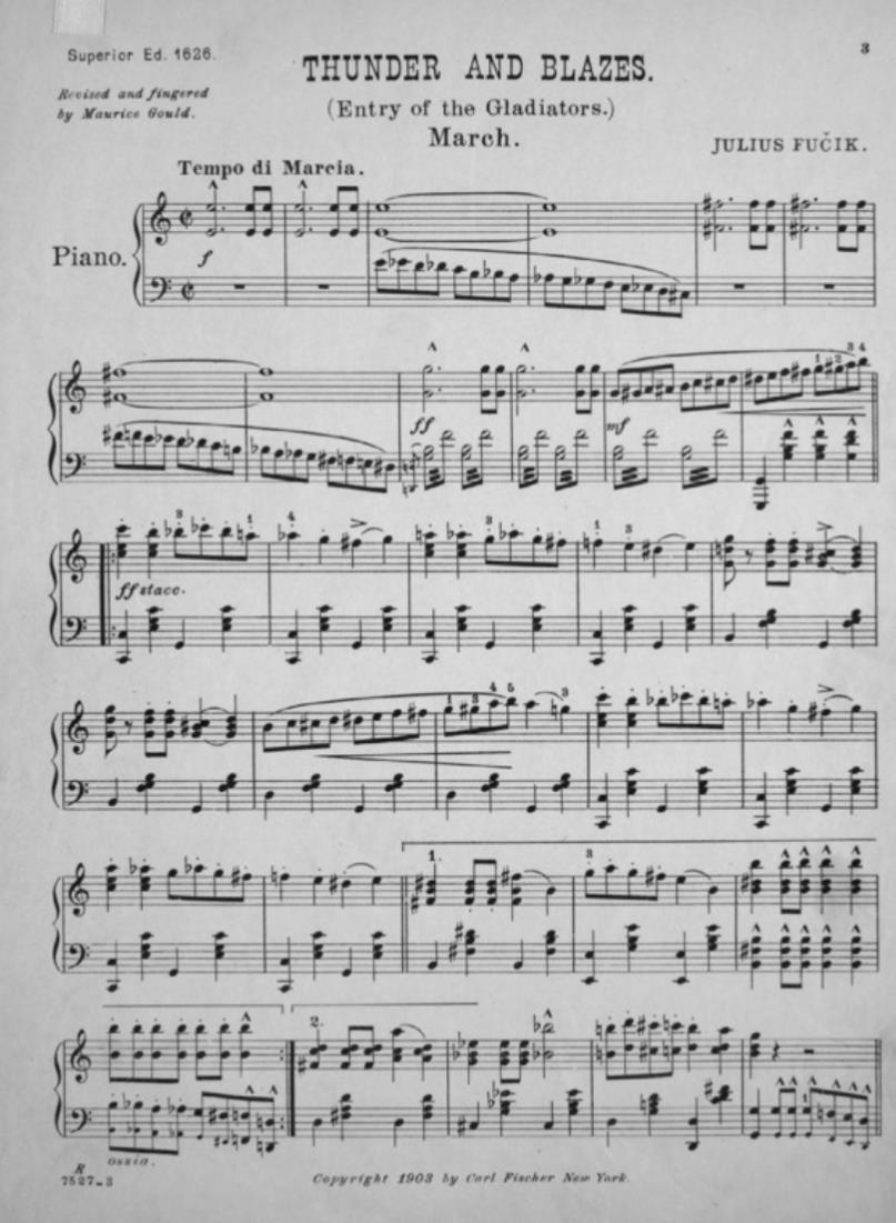 для небольшого духового оркестра и назвал её "Thunder and Blazes" ("Гром и пламя").