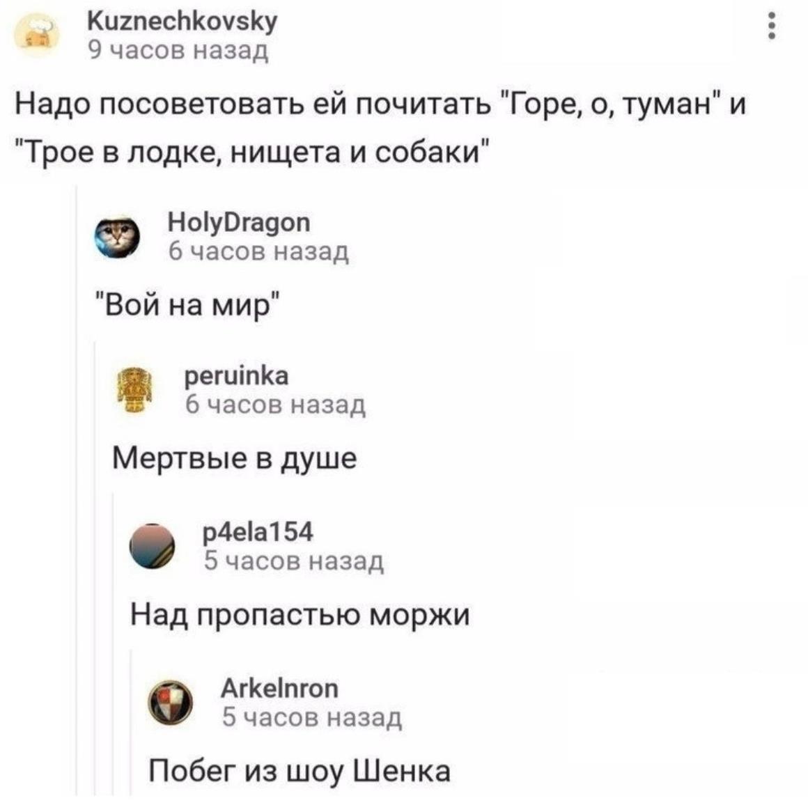 Автор: Роман МинаковВсем доброго дня. Не мог не удержаться, чтобы не поделиться этими названиями. Взял из одноименного паблика, но вдруг, если кто-то там не подписан, то мог пропустить.