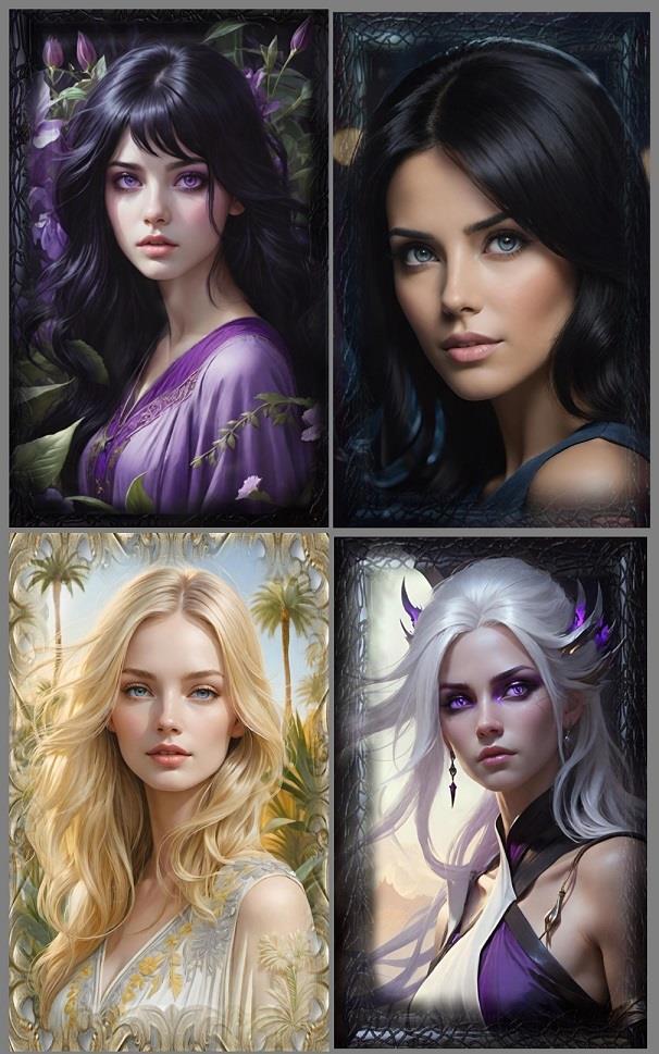 Немного предыстории. Я не очень хорошая художница и сначала рисую концепт персонажа и фон /черты лица, волосы, глаза, где он находится/, а потом старый добрый Уомбо делает вариации. Затем немного магии с Коррелом, и я получаю то, что вижу в своем воображении, когда пишу.