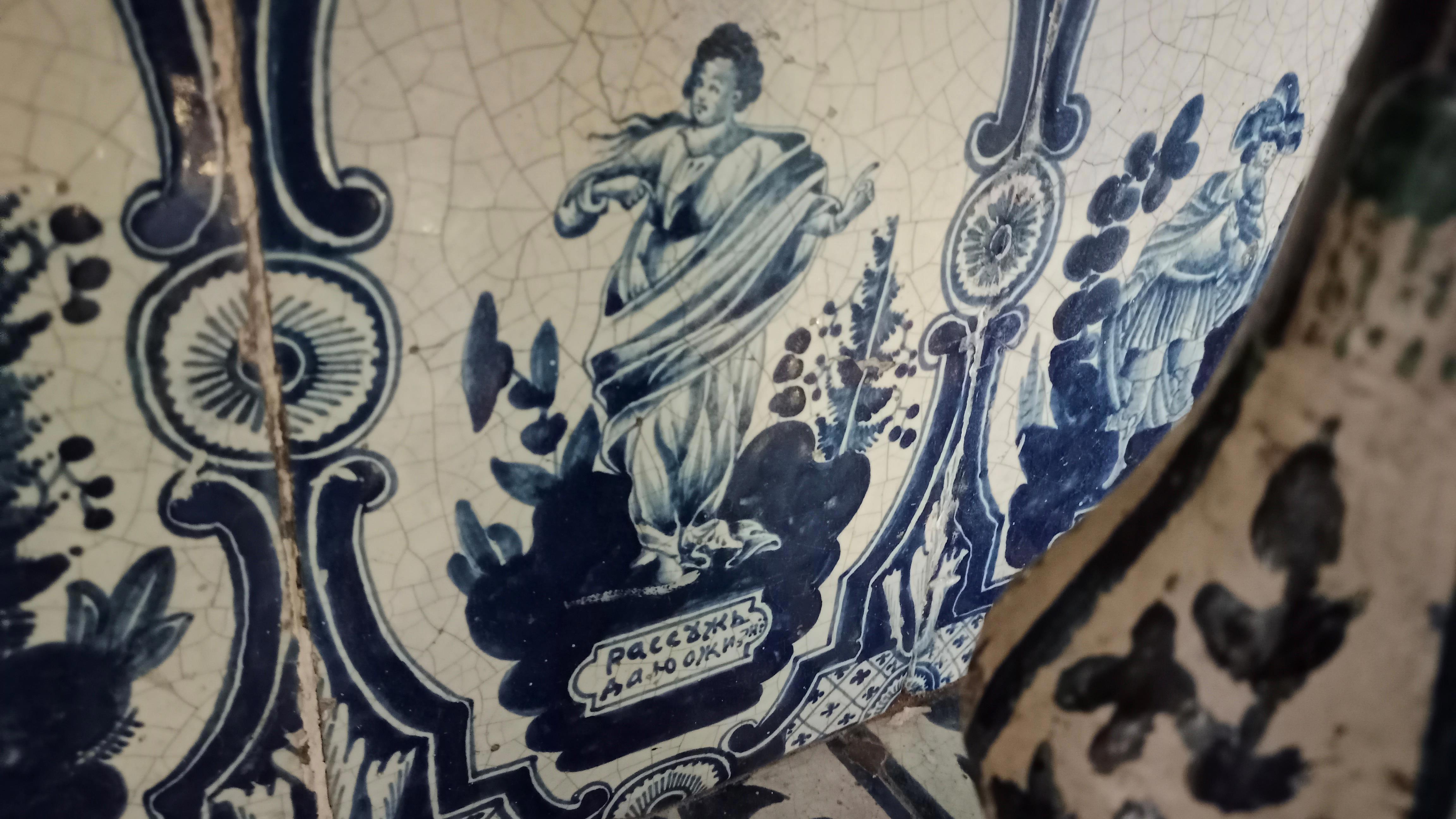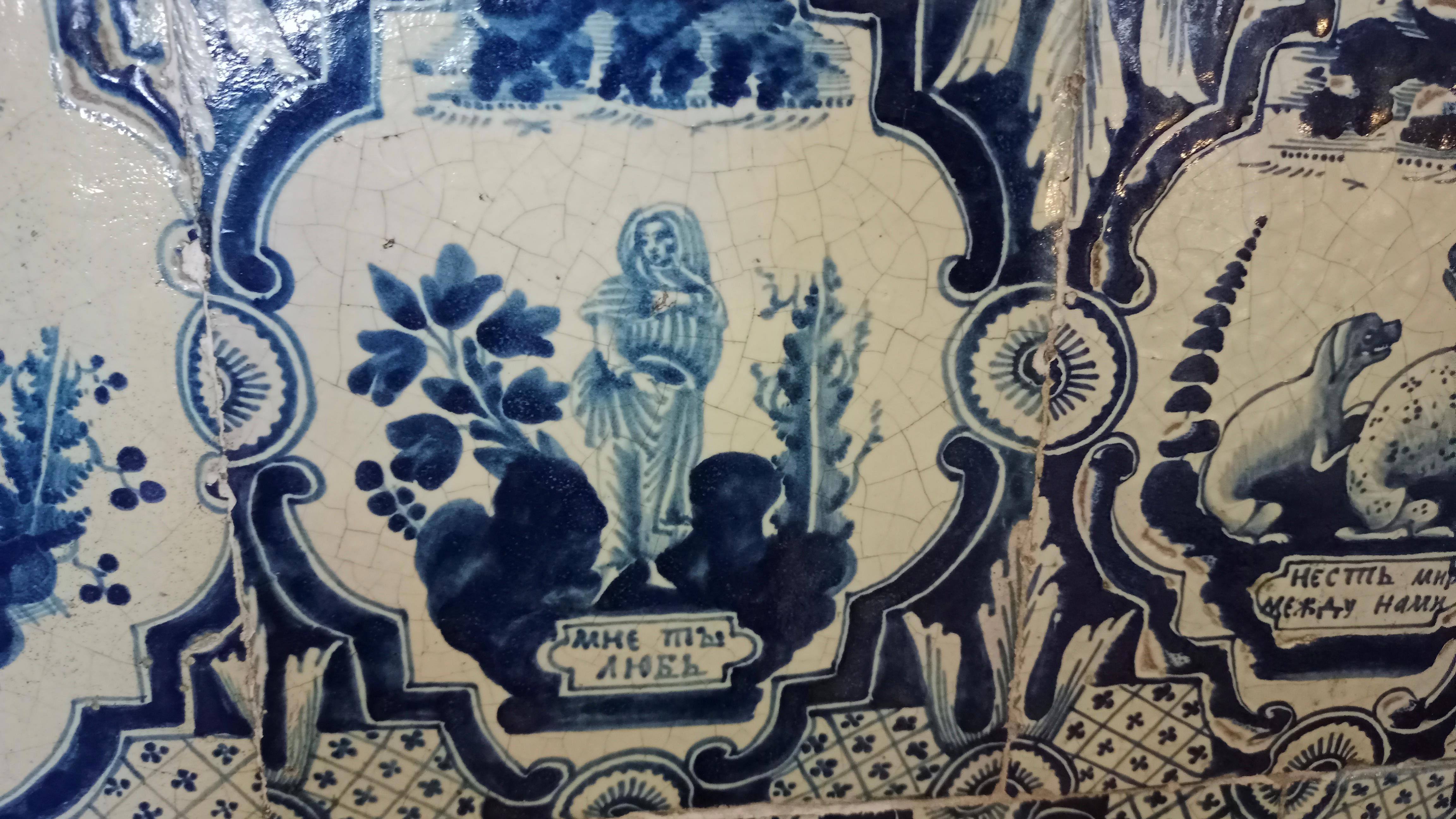 Вот в музее Суздальского кремля изразцовая печь XVIII века, вся в философских картинках про жизнь, и непременно с пояснениями.