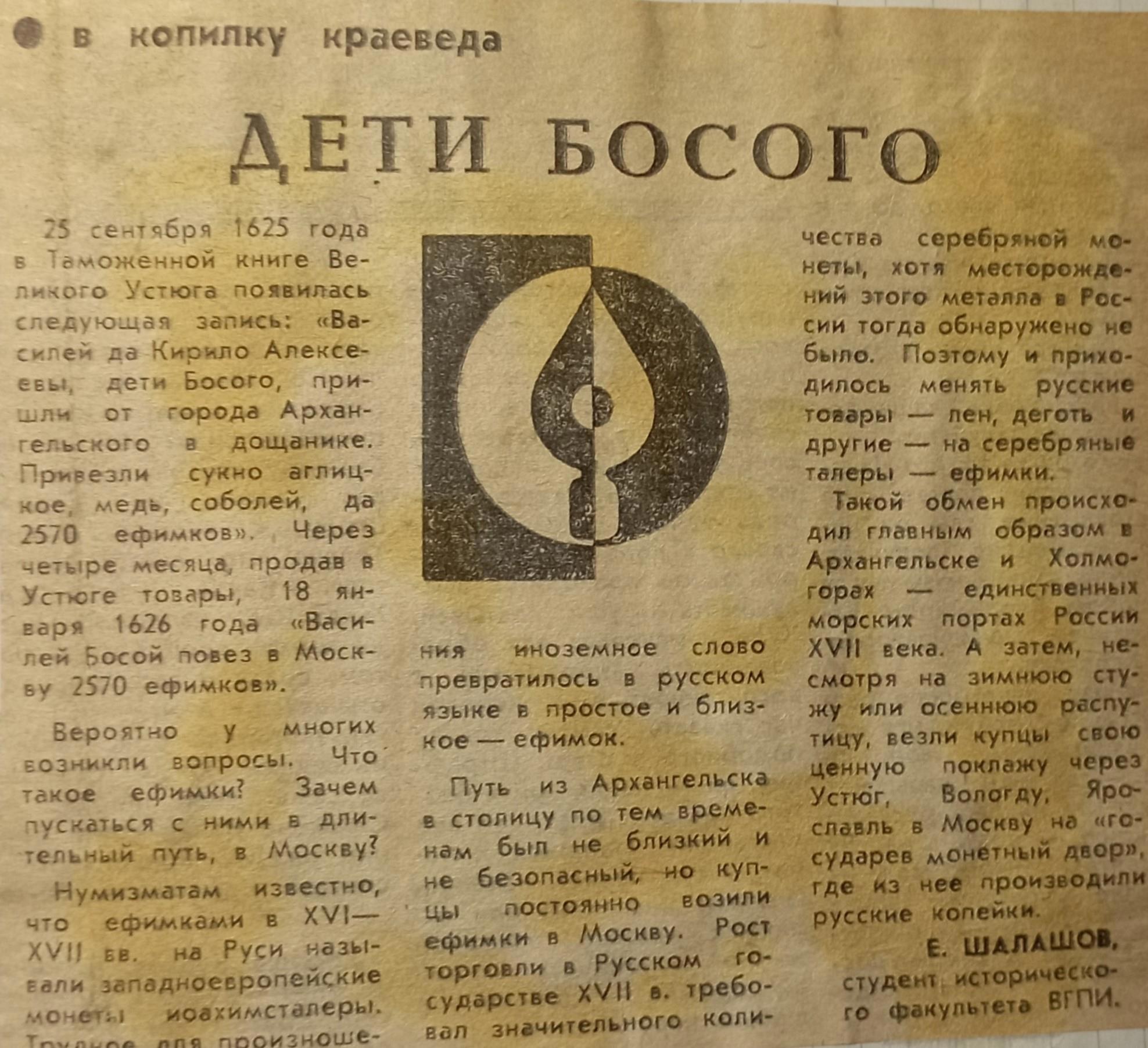 Автор: Евгений ШалашовКогда-то я завел тетрадь, в которую вклеивал свои газетные статьи и заметки. Делал это года два или три, а потом, когда стал писать больше, уже перестал что-то вклеивать, а просто хранил газеты. Я не был журналистом, но в газеты писал регулярно. Писал, разумеется, заметки по истории края.