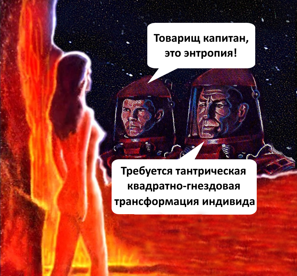 Автор: Юрий СимоненкоЧто это? — спросите вы меня. Объясняю. ТКГТИ — это тантрическая квадратно-гнездовая трансформация индивида — технология, мудро применяемая ко всяким несознательным и реакционным элементам Советом Слова и Дела в мире строго научного и самую малость фантастического романа «Туманность энтропии», написанного выдающимся советским писателем-фантастом и большим философом Ефремом Ивановым.