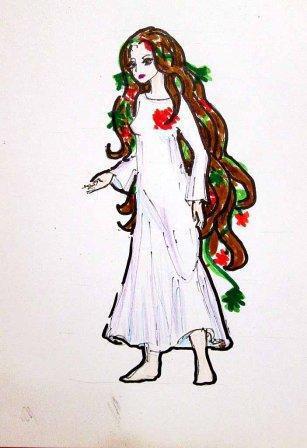 Рассказ очень красивая, поэтичная вариация на тему известного мифа. Вначале я нарисовала на бумаге главную героиню.
