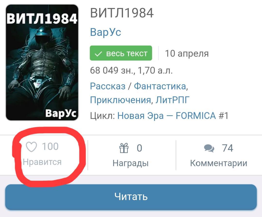 ВИТЛ1984 — 100 лайков. А ещё кипит работа над аудиоверсией