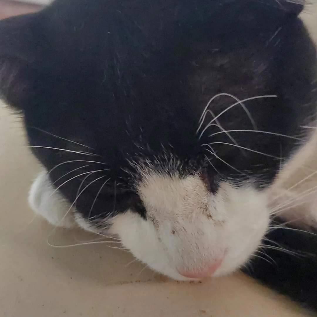 Котик спящий, отдыхающий. Ему не до пауков.