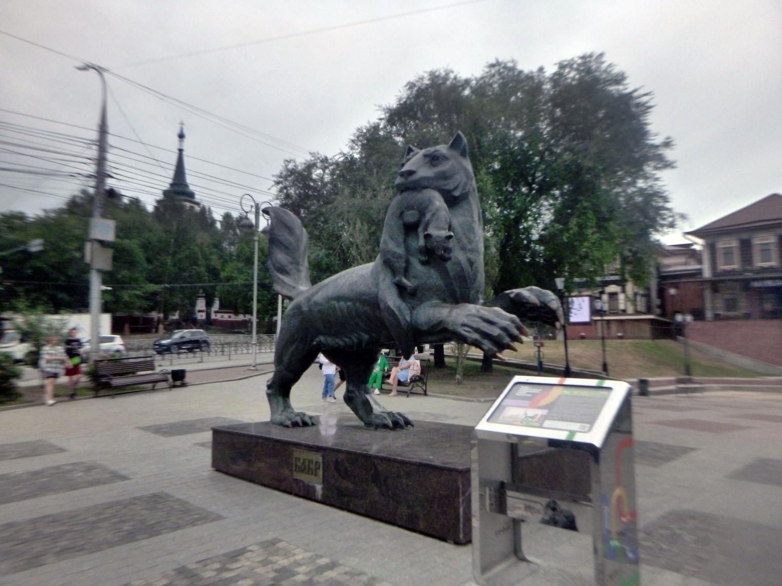 Зверь с герба Иркутска, тигр (бабр), держащий в зубах соболя.