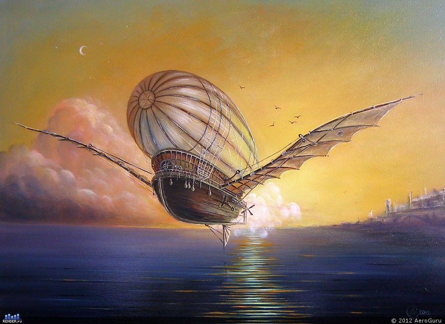 Белый дирижабль на синем море. Рина Лесникова