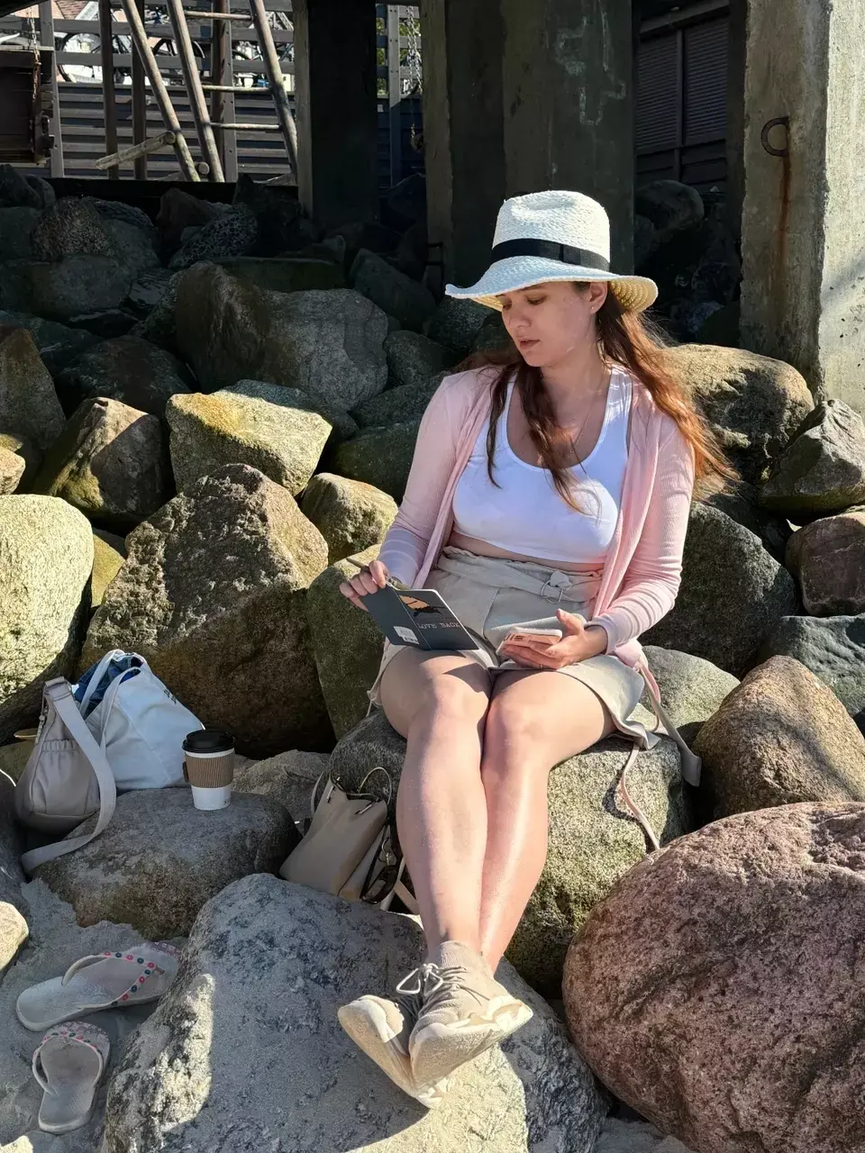 Это я на пляже в Зеленоградске дописываю первую главу с видом на море: