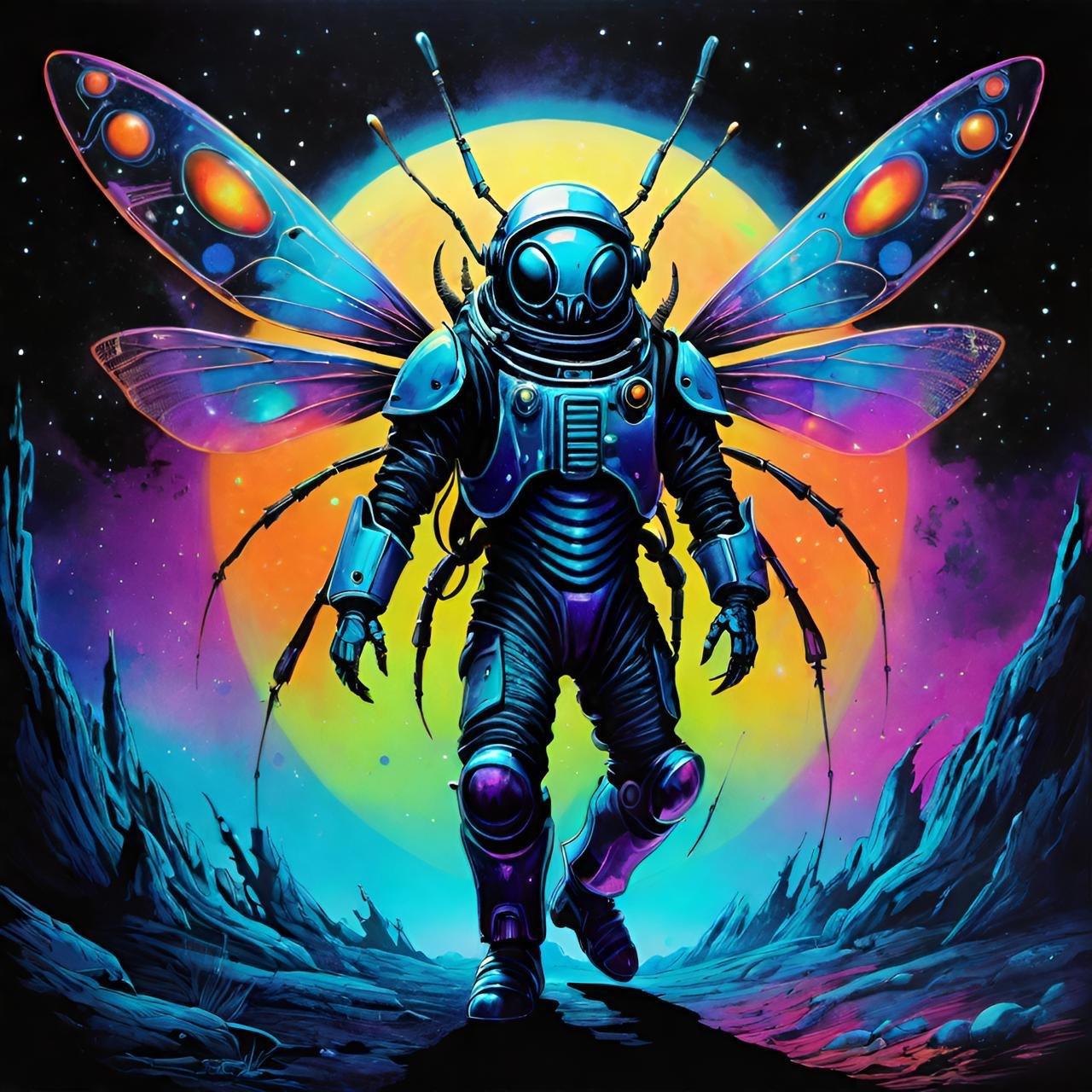 Насколько я понимаю, картинка соответствует вот этому фрагменту текста: "...когда увидел бронированного жука в скафандре с пучком порхающих щупалец вместо лапок" ))