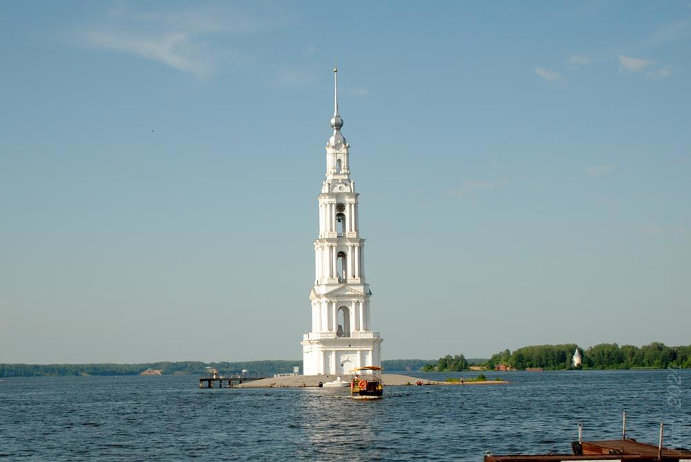 Калязин. Самые заметные достопримечательности города и окрестностей – колокольня и «тарелка» радиотелескопа. К насыпному острову у колокольни могут отвезти (500 рублей с человека, дети до 12 лет и обратная дорога бесплатноJ), на первый ярус пускают «за пожертвование». Радиотелескоп можно пофотографировать.