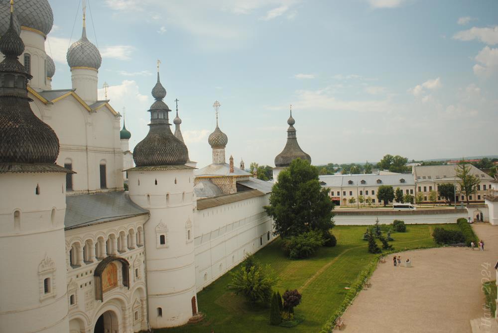 Ростов. В основной программе поездки не числился, но из Москвы нам удалось выбраться быстрее, чем опасались, так что решили сделать здесь остановку, подкрепиться («Алёша Попович» – очень атмосферное кафе с хорошей кухней и демократичными ценами) и размять ноги. Погуляли по Кремлю, залезли на колокольню (лестница узкая и крутая, так что рюкзаки лучше не брать, да и с юбками нужно быть осторожнее), а, уже идя к машине, неожиданно наткнулись на крохотный, но совершенно замечательный музей детских колясок и педальных машинок.