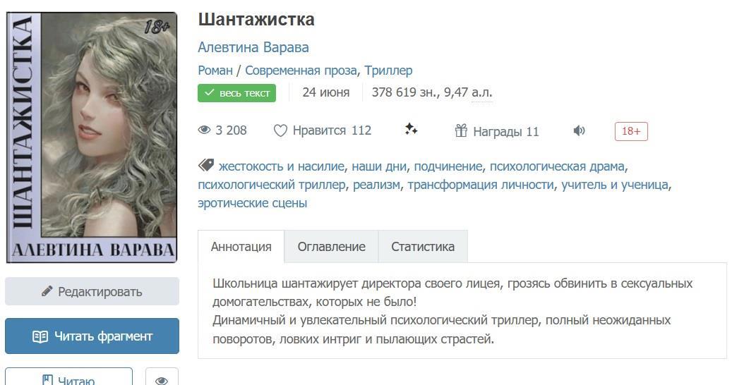 Автор: Алевтина Варава...Я оттолкнул её так сильно, как никогда не позволил бы себе по отношению к женщине в нормальной ситуации. Вскочил со стула, и он отъехал в сторону, ударившись спинкой о стол. Слава богу, на колёсиках. Грохот падения мог привлечь внимание Тамары, школьного секретаря, сидящей в приёмной за стеной.