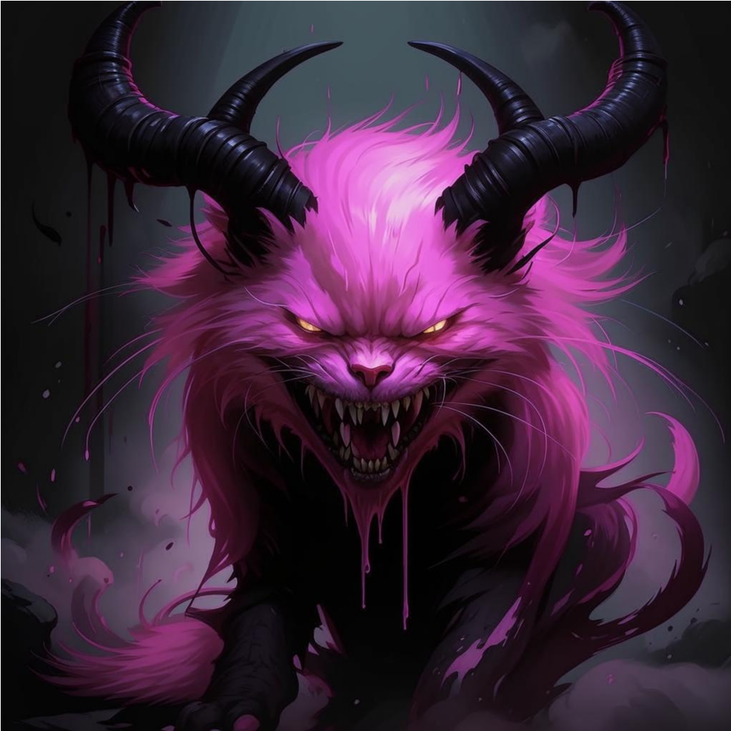 Ну и так сложилось, что сегодня день кошаков. В свободное от писанины и редактуры время я еще книжки всякие почитываю. Одна из читаемых сейчас — «Кровь Арагона» Богдана Костяного (неплохая космофантастика, любители присмотритесь). Так вот, есть в книге забавный персонаж — демон по имени Фурфур. Мне он запомнился почему-то Фунфыриком несмотря на то, что монстр вроде бы не пьет. Но этот персонажик настолько привлекательный и ми-ми-мишный в своей пакостной мразотности, что я вдохновился и сгенерил арт по описанию и своему воображению. И пусть автор убеждает, что это не канон, но именно так должен выглядеть настоящий хитрожёпый демон — как розовый пушистый кот, захочешь погладить, а он тебе руку по локоть оттяпает!