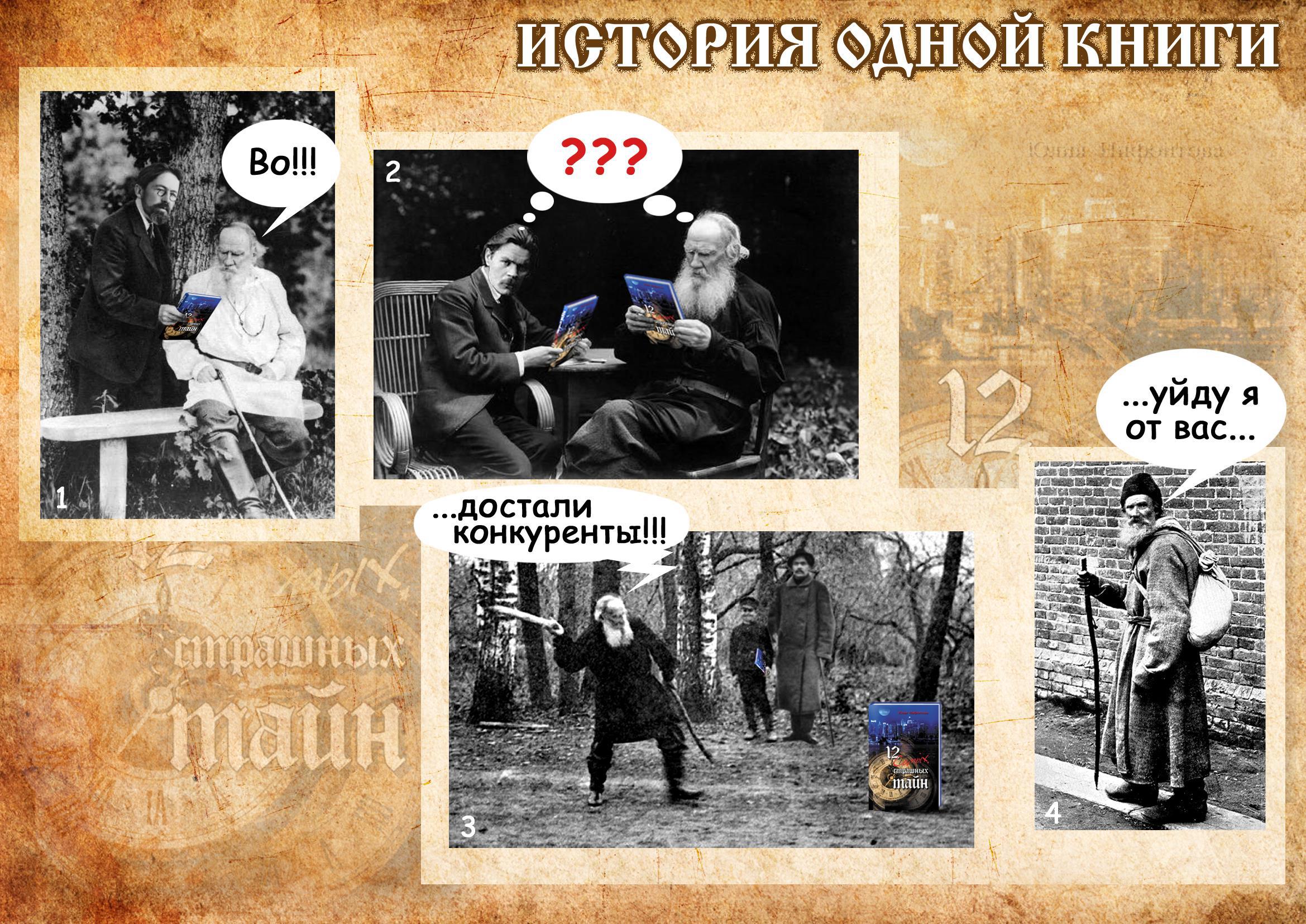 Поэтому мы сделали шуточные коллажи с сюжетами о том, как бы наши великие классики прорекламировали мою книгу… по-моему, получилось довольно забавно…