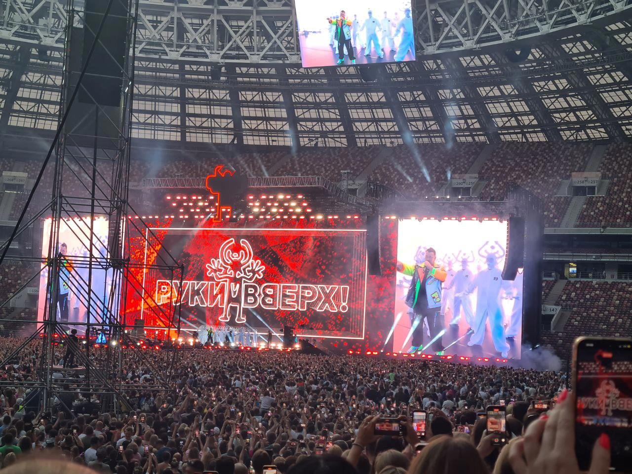 Автор: Сиротенко АндрейВ субботу 20 июля я был на концерте Руки Вверх. Вообще это мой второй концерт на стадионе в жизни. Первый был очень давно уже. Правда, на тех же Лужниках. И это были RHCP. Сравнивать организацию тогда и сейчас не буду, ведь тогда и стадион был другим, да и опыта таких мероприятий было поменьше. Главное неприятнее впечатление, что я сидел прямо напротив сцены, но передо мной стояли четыре биотуалета, в которые постоянно бегали ребята с фан-зоны и танцпола, и большая стойка со светом, которая загораживала большую часть сцены.