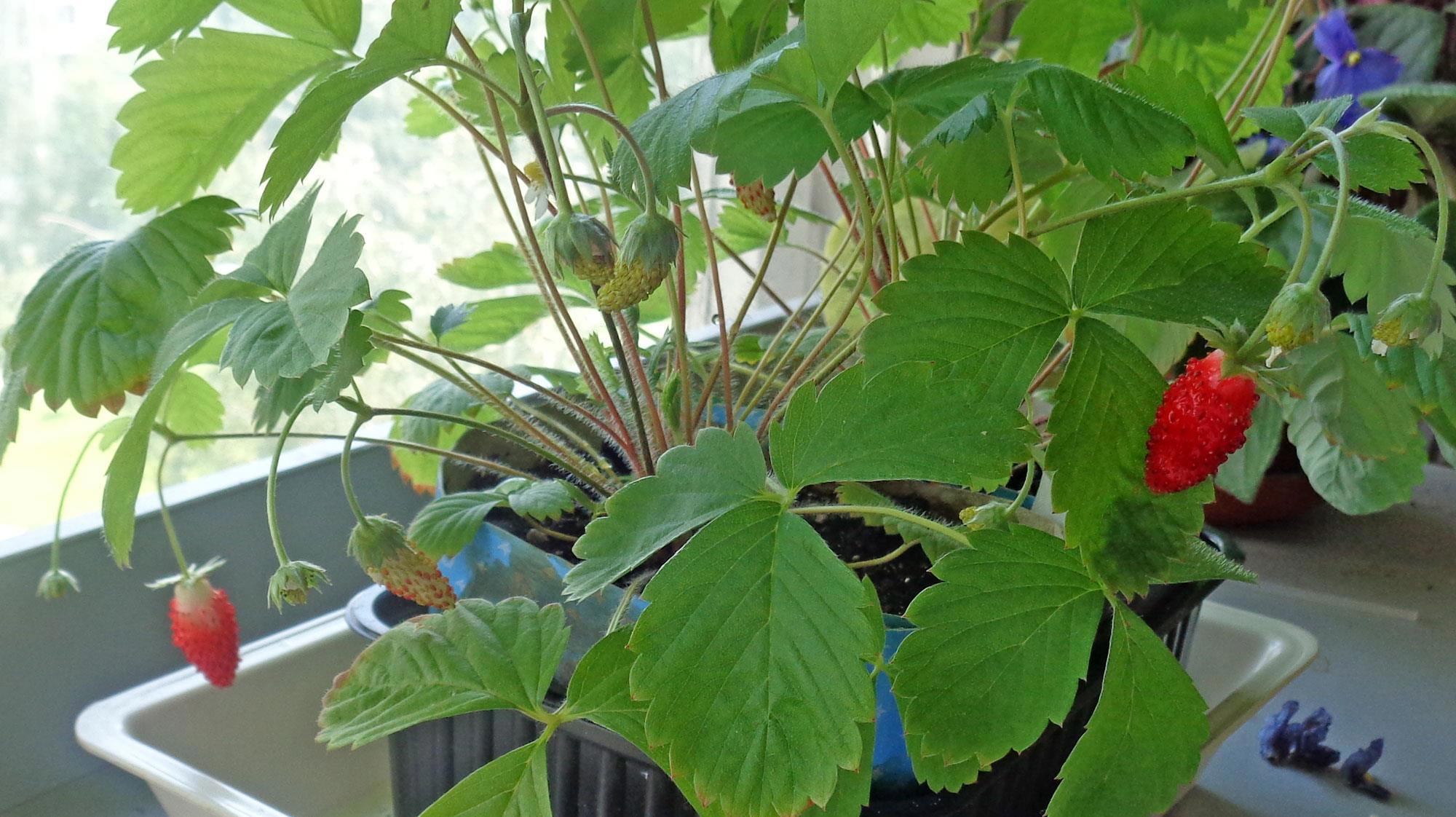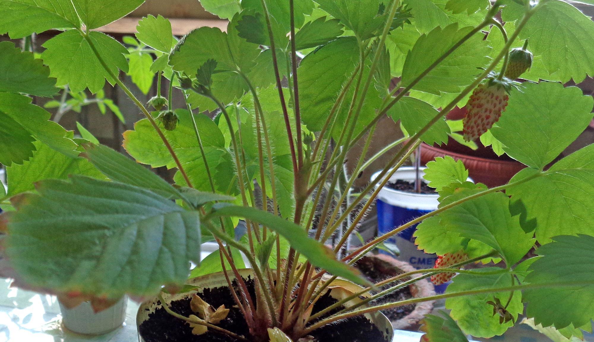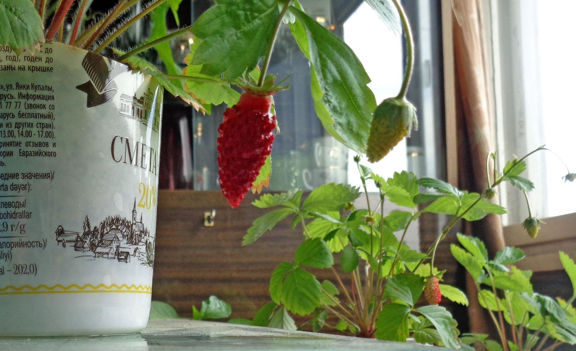 По всей квартире растёт земляника. Часть ягод уже съели, хотя если честно, я вообще не ожидала, что они в первый же год будет плодоносить.
