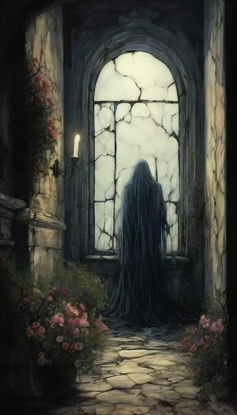 Зеркальная поверхность подернулась призрачной дымкой. В глубине задрожал, разрастаясь, темный силуэт. Поверхность покрылась сетью тонких трещин, послышался хрусткий треск. Несколько кусков стекла выпали и с тихим звоном упали на кафельный пол. Сквозь прорехи из зеркала в комнату потекли струйки дыма и остро запахло гарью. Меня сковал страх, не двигаясь, широко распахнув глаза, я наблюдала за происходящим.