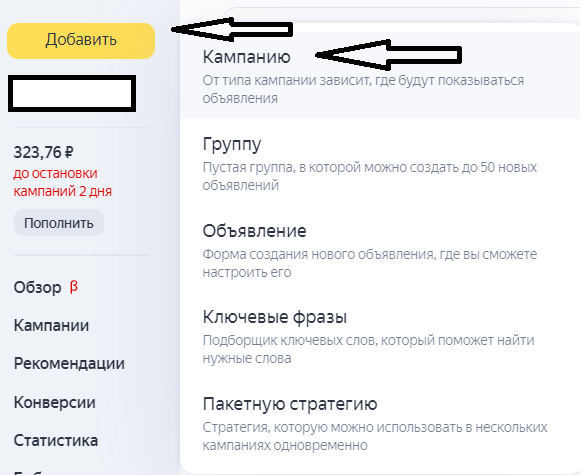 После нажатия кнопки "Сохранить" вы уже можете приступить к созданию рекламной кампании.