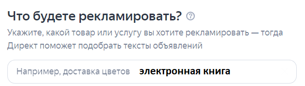 Далее система вас спрашивает, что вы собственно собираетесь рекламировать, мол умный ИИ вам предложит варианты! Я просто указала "электронная книга" и пошла по пунктам дальше.