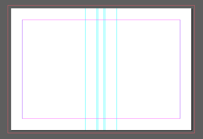 Допустим вот такие поля у страниц еще мне сказала типография сделать. Ну и прочее… Припуск 5 мм… Вон там корешок в середине со своей безопасной зоной. Я даже побольше места дам на люфт потом, так лучше.