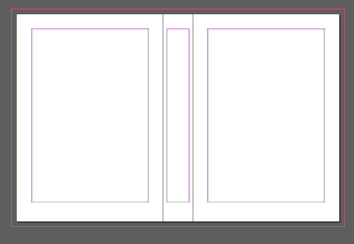 и вот я сделал отдельно одну целую страницу по тем размерам и разметил ее соответственно, пусть тут будет узкий корешок где-то в 15 мм