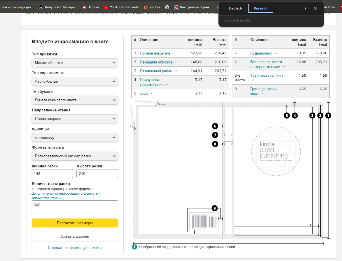 Ну и потом мы идем или в ваш сервис бук ондеманд или на сайт типографии или пишем/звоним им. Сейчас там часто есть и калькулятор размера. Дело в том, что нам надо рассчитать корешок. Это зависит от многих факторов, таких как вид переплета, и толщина бумаги, она может быть разная независимо от грамматуры. Какая там у них бумага есть мы не знаем, поэтому каждый раз приходится с ними рассчитывать. А если вы меняете размер издания, или количество страниц, то тем более.