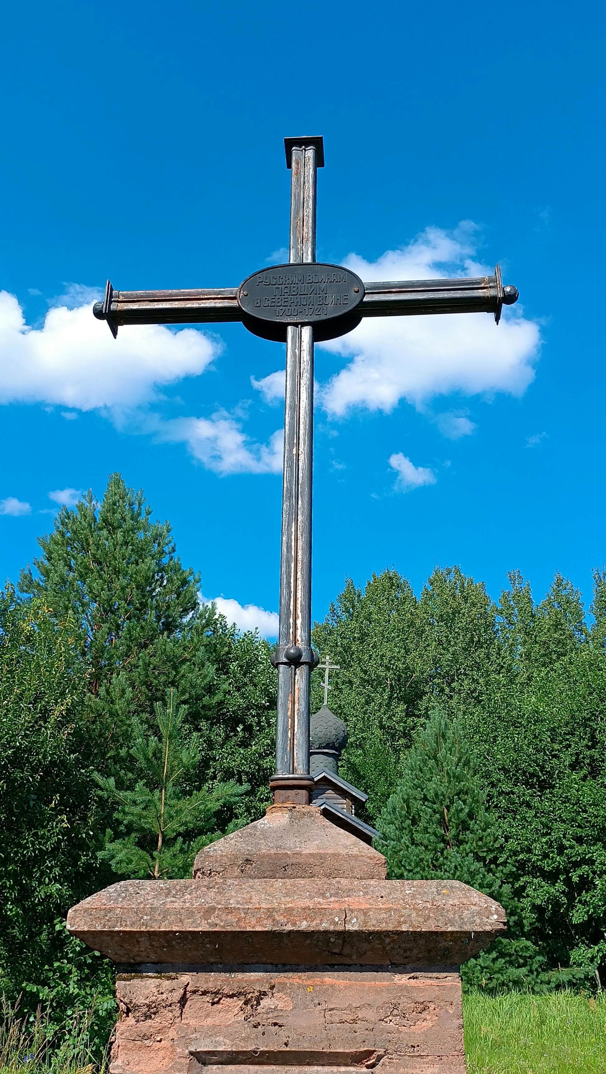 Крест установлен в том месте, где Пётр Первый форсировал Нарву во время первой Северной войны, на эстонском берегу есть шведский крест.