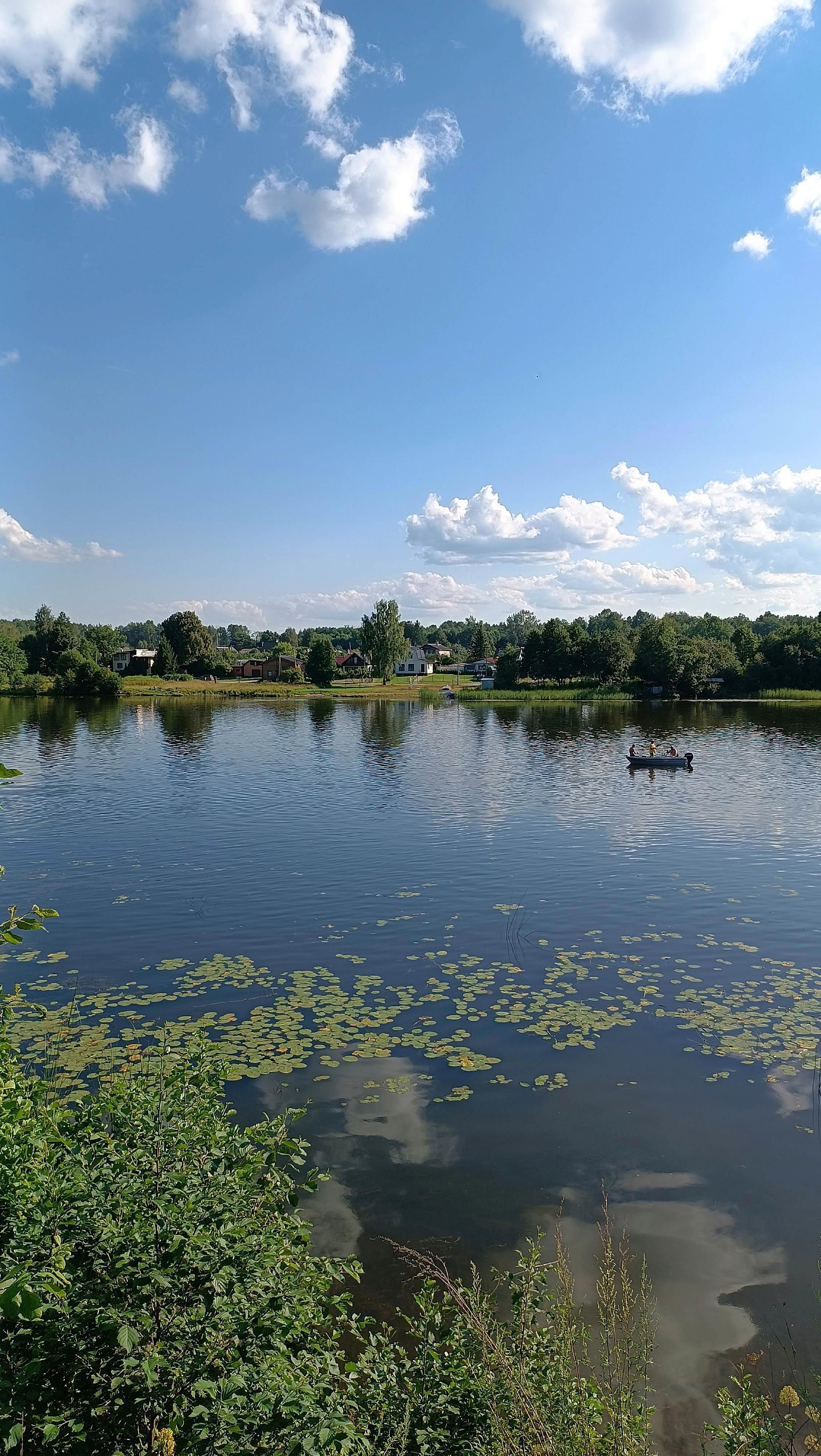 А это вид на реку. Рыбаки в лодке наши, а дачи на том берегу эстонские.