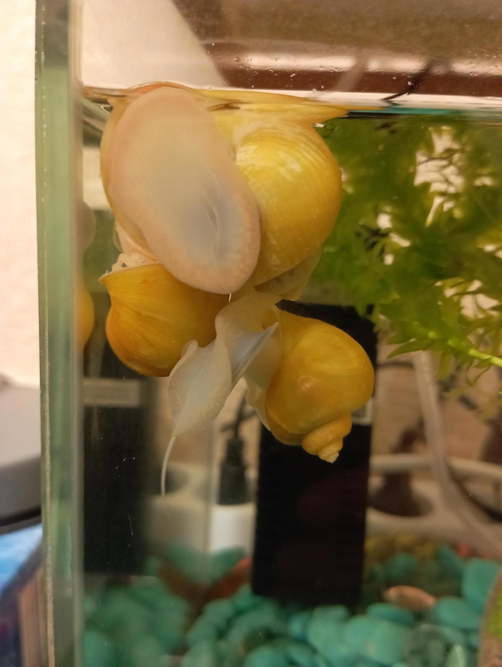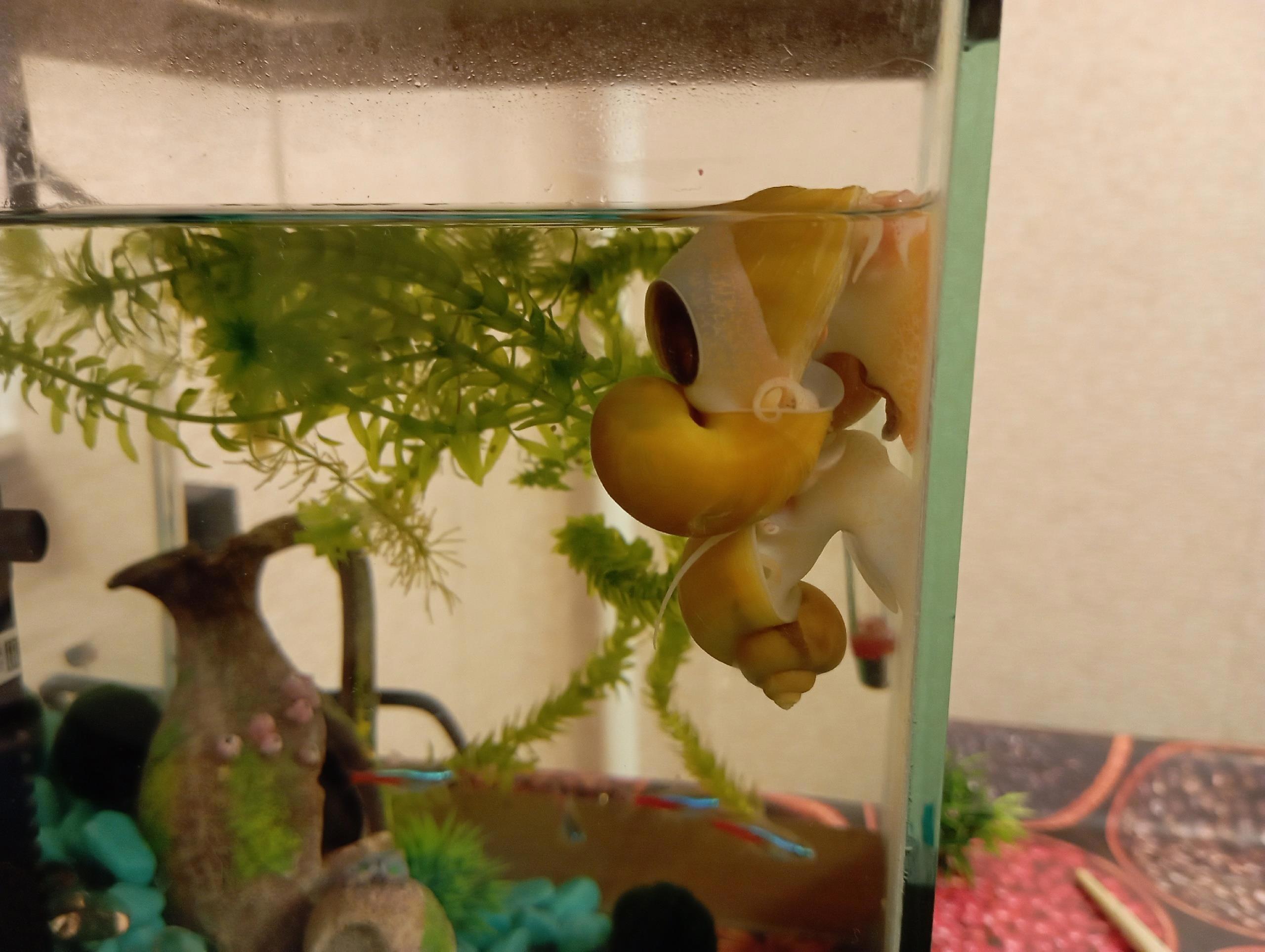 В самом прямом смысле речь пойдёт про улиток. И даже фотки будут. Расскажу про жизнь аквариумных улиток ампуллярий (лат. Pomacea bridgesii). Этот вид улиток — раздельнополый, правда, внешне не поймёшь, кто самец, кто самка.